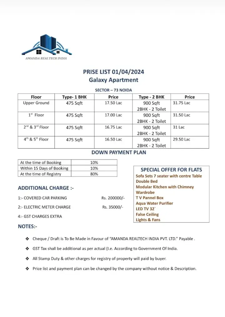 Galaxy Apartment – Spacious 2 BHK Flats in Sector 73, Noida